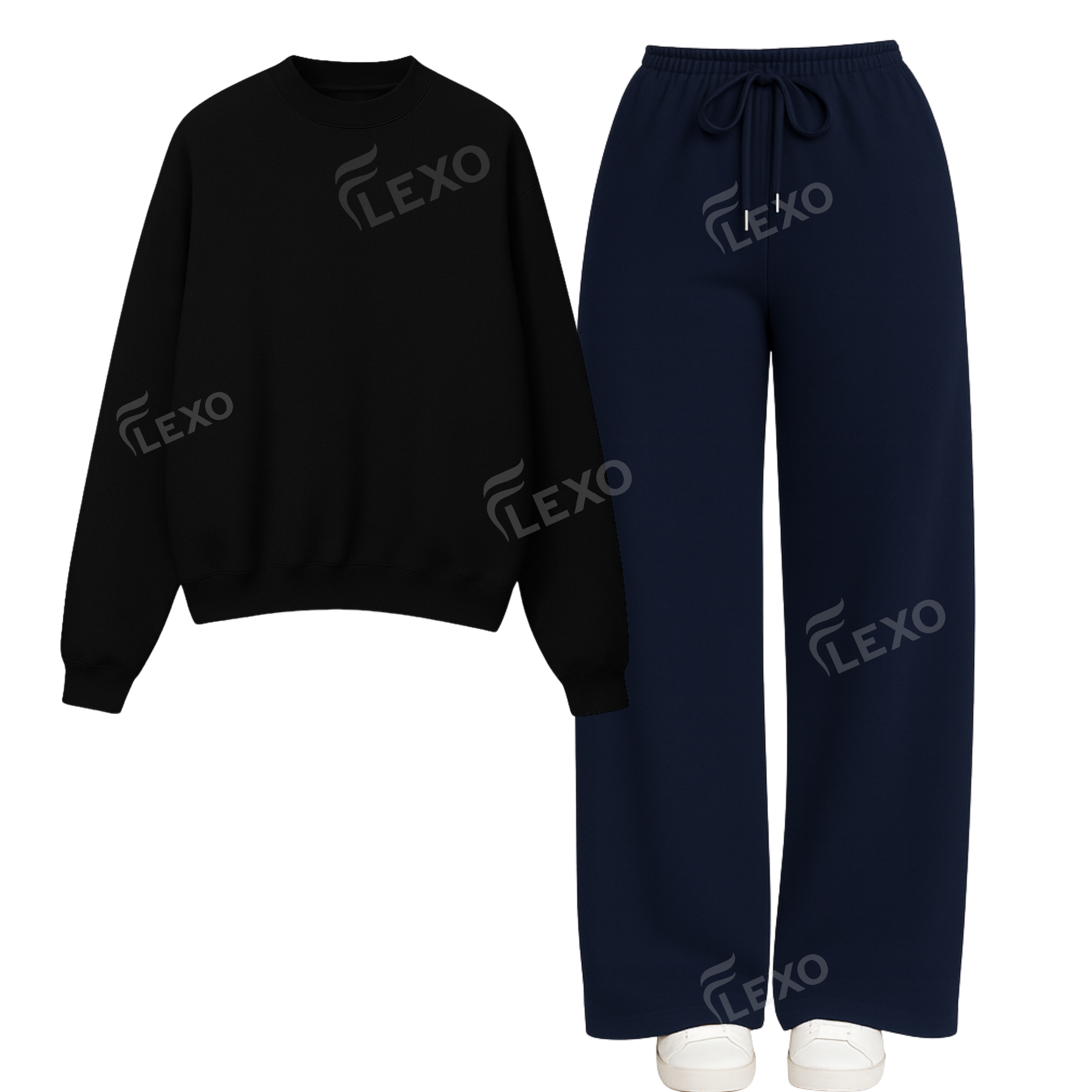 This combo pairs Flexo’s oversized sweatshirt with our structured straight-leg trouser, giving a modern winter look that’s both comfortable and ultra-polished.