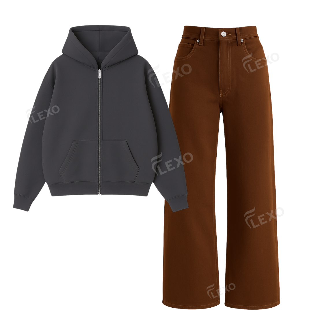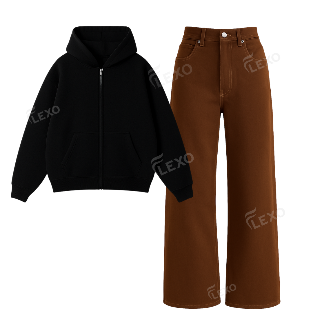 A premium, clean, layered winter look. Flexo’s oversize zipper hoodie paired with heavy baggy denim gives you warmth, structure, and streetwear versatility in one powerful combo.