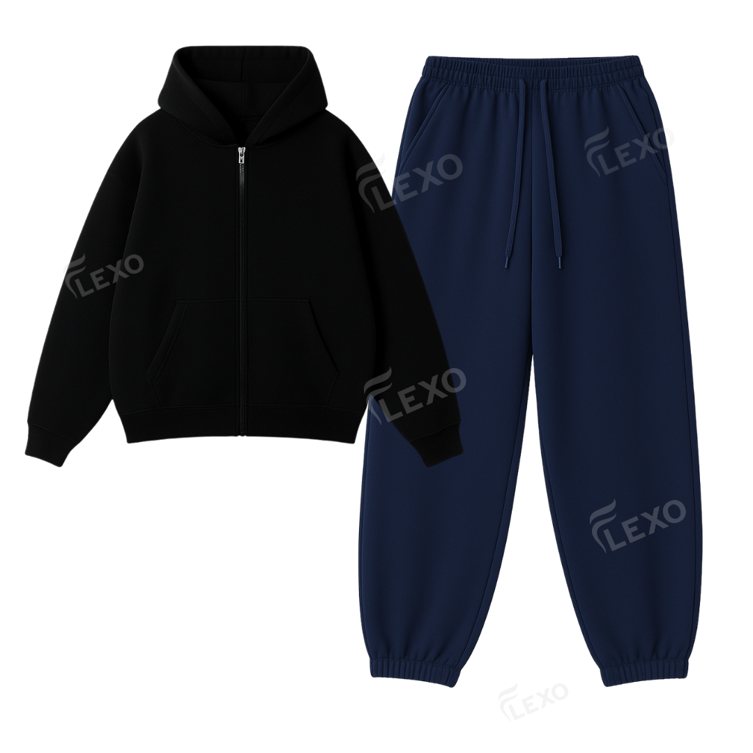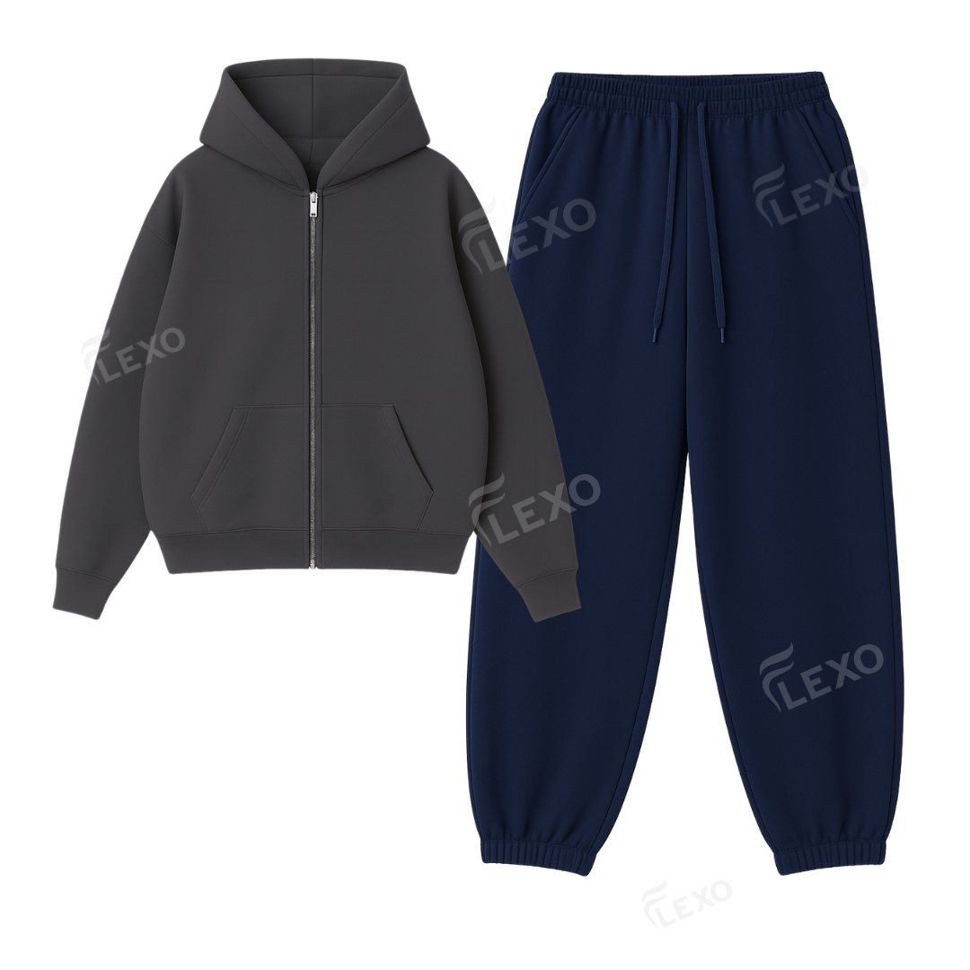 This combo brings together Flexo’s premium zipper hoodie with our baggy fleece sweatpants — perfect for those who want warmth + layering flexibility + clean streetwear energy.